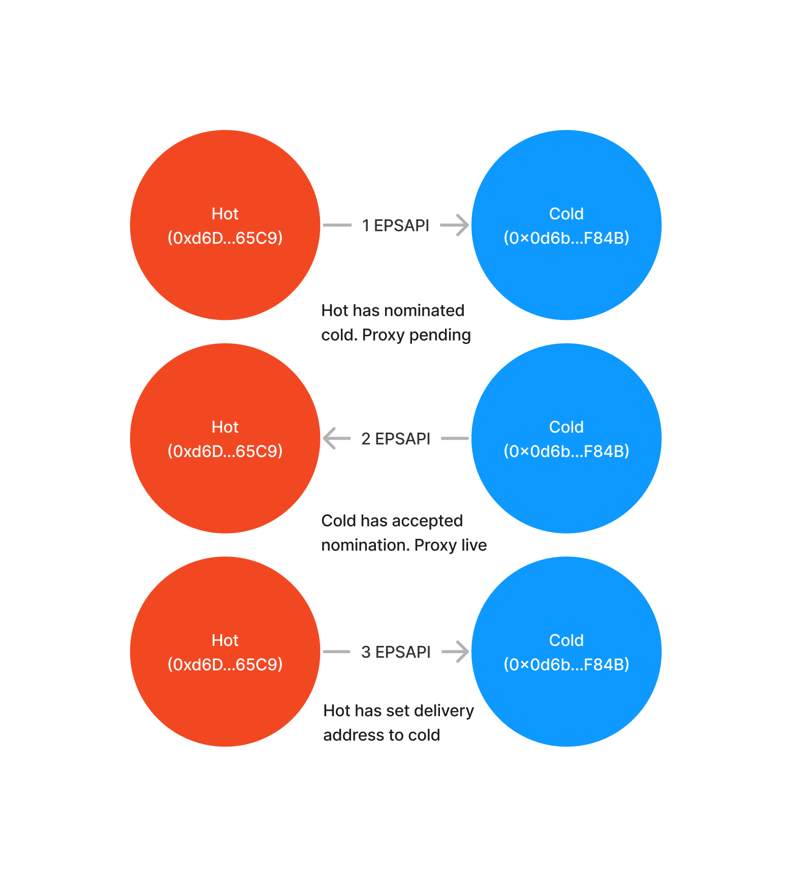 Setup is very easy. Thanks to EPS's headless protocol the user never needed to connect their hot or cold wallet to EPS.
