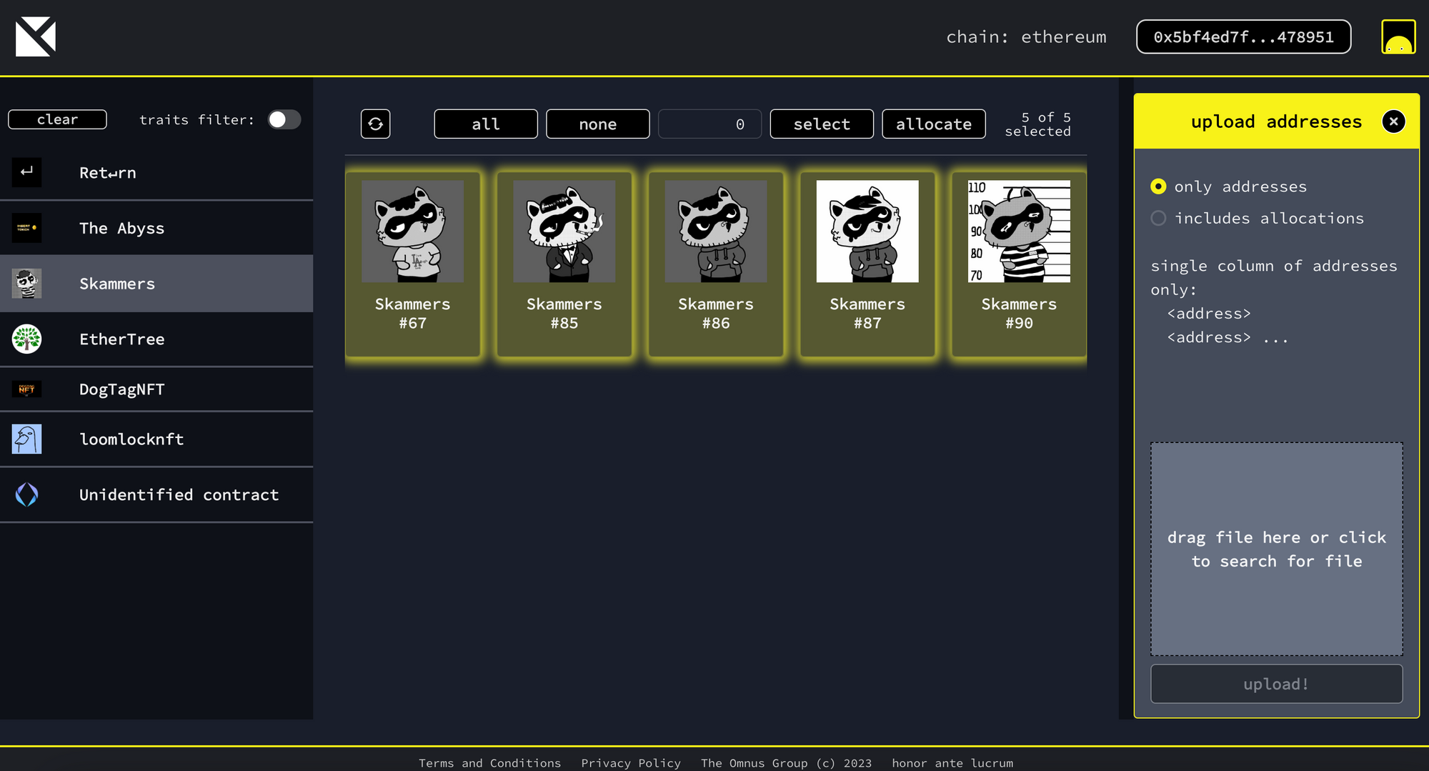 Located on the right hand panel of the screen, you can upload a csv with either just addresses OR addresses plus allocations.