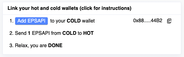 Transfer 1 EPSAPI from your COLD to your HOT address. This tells EPS about the relationship you want to create.
